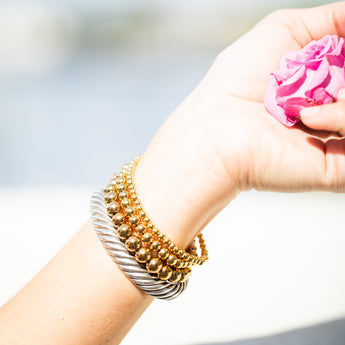 The 14kt Gold-filled Regular Bracelet is made on a high-quality stretchy cord. Beautiful, minimalist, and easy to layer with your other favorite Be The Light Malas gemstone bracelets. It's available in standard 7 inches in size.