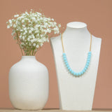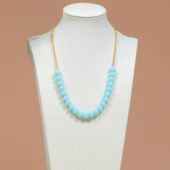 The Flourish Aquamarine Necklace is crafted on an Electroplated Gold chain. This Luxe Necklace layers beautifully with other necklaces and is eye-catching on its own. About 18" in length and is adjustable.