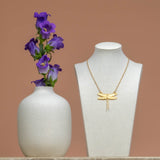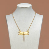 The Flourish Dragonfly Necklace is crafted on an Electroplated Gold chain. This Luxe Necklace layers beautifully with other necklaces and is eye-catching on its own. About 18" in length.