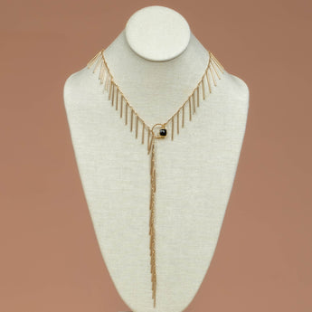 The Flourish Goddess Necklace is crafted on an Electroplated Gold chain. This Luxe Necklace layers beautifully with other necklaces and is eye-catching on its own. About 18" in length and is adjustable.