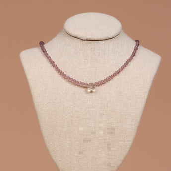 Petite Chokers are made with genuine semi-precious gemstones and come with an assortment of gems and gold-plated charms. They are about 15” long and hang at or slightly below the collarbone. Clear Quartz symbolizes clarity, healing, and amplification of energy and intentions.