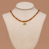 Petite Chokers are made with genuine semi-precious gemstones and come with an assortment of gems and gold-plated charms. They are about 15” long and hang at or slightly below the collarbone. The Hamsa and the All-Seeing Eye are symbols of divine protection against the evil eye.